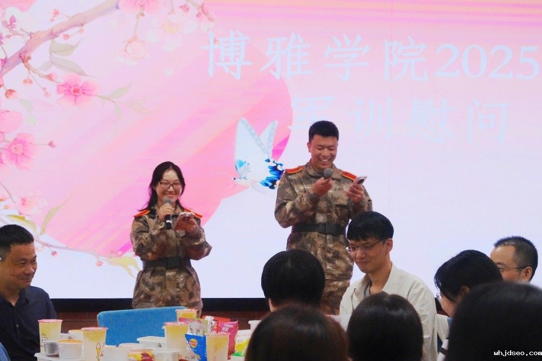 清风送爽,温情满院。9月14日,博雅学院在学院报告厅隆重举行2025级新生军训慰问活动,为正在刻苦参加军事技能训练的新生送去清凉与关怀,勉励他们顺利完成训练任务,促进师生互动交流,丰富军训期间文化生活。学院党委书记孙江林、党委副书记姜雪峰、副院长李广益、副院长唐杰、2025级班主任及辅导员朱家常等出席活动,与全体新生共同参与了本次慰问交流。